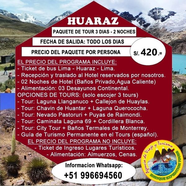 * Huaraz Viajes Turismo 3 dias – 2 noches