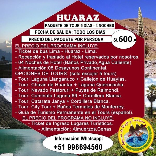 PAQUETE DE TOURS HUARAZ: